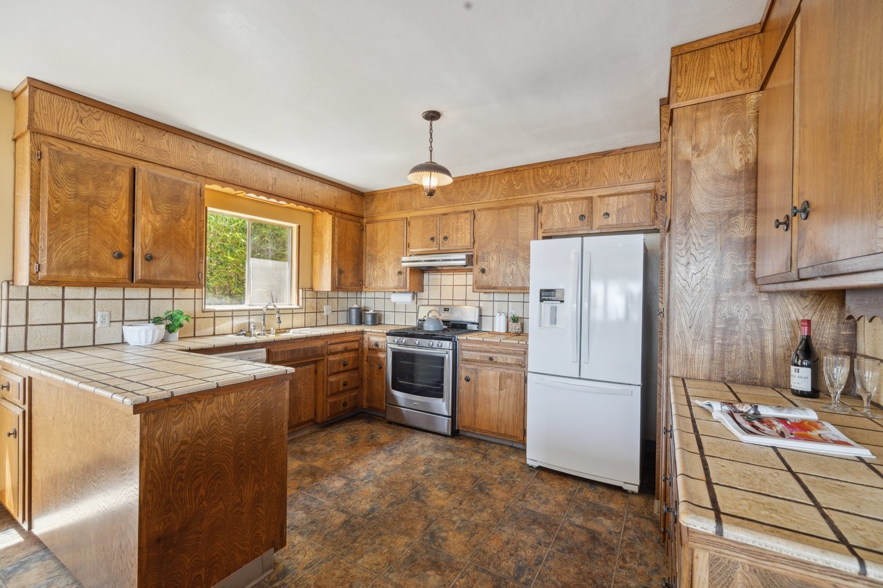 Perched above the heart of Capitola Village, 1540 Prospect Ave offers a front-row seat to breathtaking coastal panoramas, where the iconic Cement Ship, the longest stretch of shoreline in the county, and the endless blue of the Pacific converge in a living canvas of sea and sky. Inside a grand hallway unfolds, lined with four bedroomstwo pairs connected by Jack and Jill baths. As you reach the end of the corridor, prepare to be swept away: a wall of glass reveals a sweeping view of the ocean, casting the spacious living room in radiant natural light. Behind it, the open-concept kitchen is perfectly positioned for entertainingpour a cocktail, prepare a feast, and never miss a moment of the setting sun as it melts into the horizon. This home is rich with artistic architectural touches, blending mid-century inspiration with timeless charm. A detached garage with a versatile loft space above awaits your visionwhether a WFH office, yoga studio, or guest quarters. The thoughtfully designed front yard features hardscaping and mature landscaping, while the backyard is a charming courtyard with covered storage for surfboards and coastal essentials. Rarely does a property like this come to marketa coastal escape with soul, style, and one of the best views in all of Santa Cruz County.